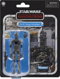 This massive 2025 Deluxe Vintage Collection set brings one of the most memorable moments from The Mandalorian Season 3 to your shelf. Featuring the reassembled IG-12 chassis piloted by Grogu, alongside a pair of mischievous Anzellan droids, this is a must-have **3.75-inch action figure** set that packs more personality than almost anything else in the current lineup.